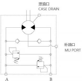 This hydraulic circuit includes time delay valve and schockless relief valve (option)